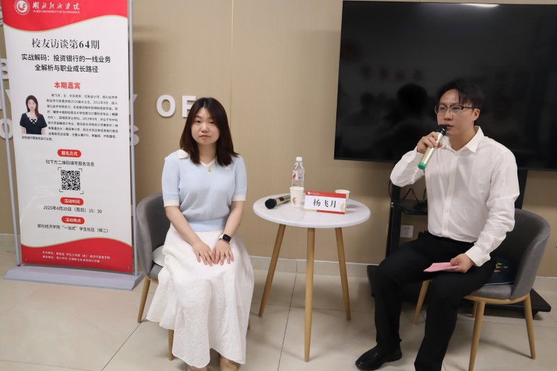杨飞月员工以“实战解码:投资银行的一线业务全解析与职业成长路径”为主题分享行业洞见。在访谈过程中,杨飞月结合自身在校学习经历和工作经历,以生动案例解析投资银行的一线业务逻辑。她详细介绍了自己在校的学习备考经验,以及工作中的项目经历。谈及个人的学习成长,她建议学弟学妹们坚定持续学习的动力、锤炼抗压能力,积极投身到企业实习中主动积累实操经验。