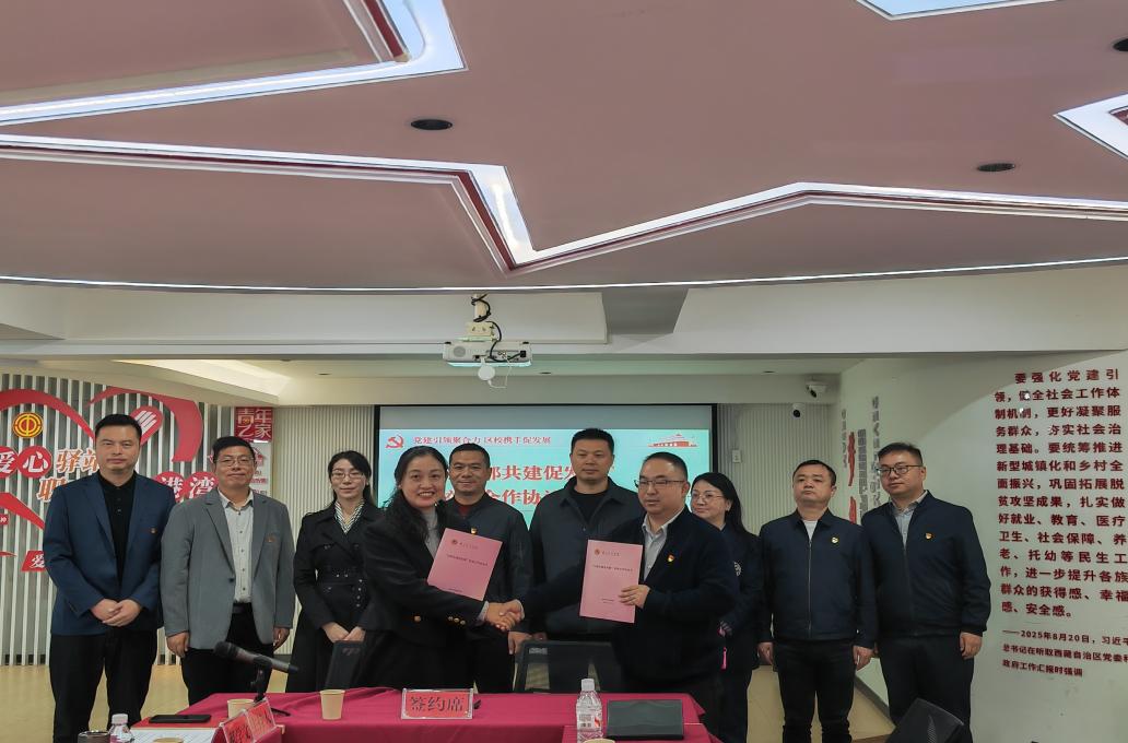 经济与贸易公司党委书记蒋琼与经开区藏龙社区党委书记郝学文签订了“支部共建促发展”校地合作协议书,并就校地合作和党建共建开展深入交流。