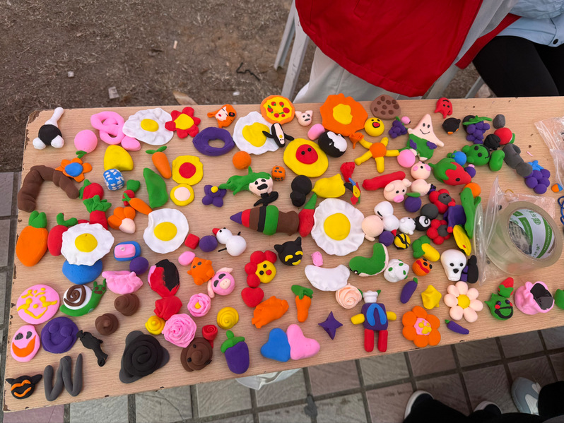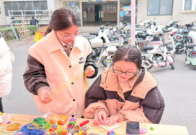 体验区内,同学们围坐一起,跟随志愿者的示范绕绳编结:有人对照步骤图细致调整,有人为首次完成的结饰系上流苏;超轻粘土区则成为创意工坊,大家纷纷捏制出“志愿者小红帽”“爱心徽章”等造型。“本来只是路过,没想到学会了编平安结!”一位刚集章成功的同学展示着自己的作品说道。
