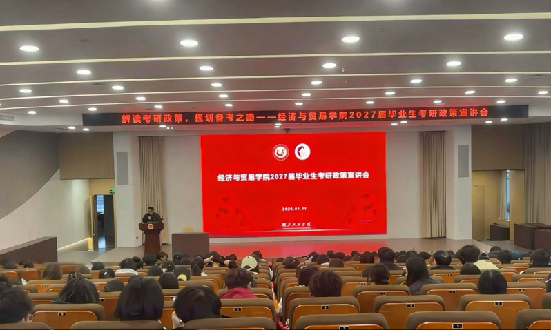 为帮助2023级员工洞悉考研趋势、明确备考方向,1月11日下午,学院于老员工活动中心二号报告厅成功举办2027届毕业生考研政策宣讲会。本次宣讲会特邀新东方教育科技集团优秀教师、教学培训师杨金晨担任主讲,由辅导员吴鹏主持。